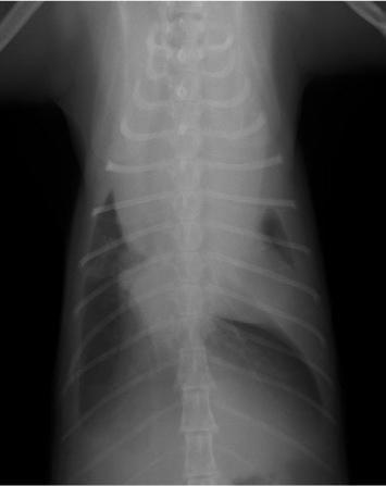 昨夜から排尿がなく、嘔吐があるとのことで来院されました。一般身体検査では、膀胱内に貯尿はなく、血液検査では腎臓の数値が著しく上昇していました。急性腎不全を疑い、入院治療となりました。まず、尿道内カテーテルを挿入し輸液療法と利尿剤投与を行いましたが、排尿は見られず、腎臓の数値も悪化していきました。おしっこが出ないので、体はむくみ、尿毒症による口内炎のため、よだれが出ている状態でした。ご家族とご相談の上、麻酔のリスクはありますが、腹腔内チューブを設置し、腹膜透析を行うことにしました。また、麻酔中に食道チューブの設置も行いました。腹膜透析は腹腔内チューブを介してお腹の中に透析液を注入し、2時間毎に回収しては新しい透析液を注入します。開始2日目に少量の排尿が見られるようになり、その後徐々に尿の生産が増えていき、腎臓の数値も低下していきました。透析開始6日目には腎臓の数値も低下し、排尿も見られるようになったため、腹腔チューブを抜去しました。その後も輸液療法を続けたところ、大量の排尿が見られたため、入院16日目に退院することが出来ました。退院後、しばらくは口内炎等で自力ではご飯が食べれないため、腎臓病用の流動食を食道チューブから入れていただいていましたが、退院3週間後には、口から元通り食べられるようになったため、食道チューブも抜去しました。